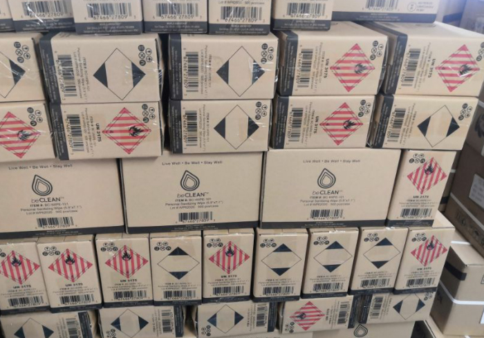 我司生產(chǎn)的75%酒精消毒濕巾,經(jīng)上海港出口至歐美國(guó)家