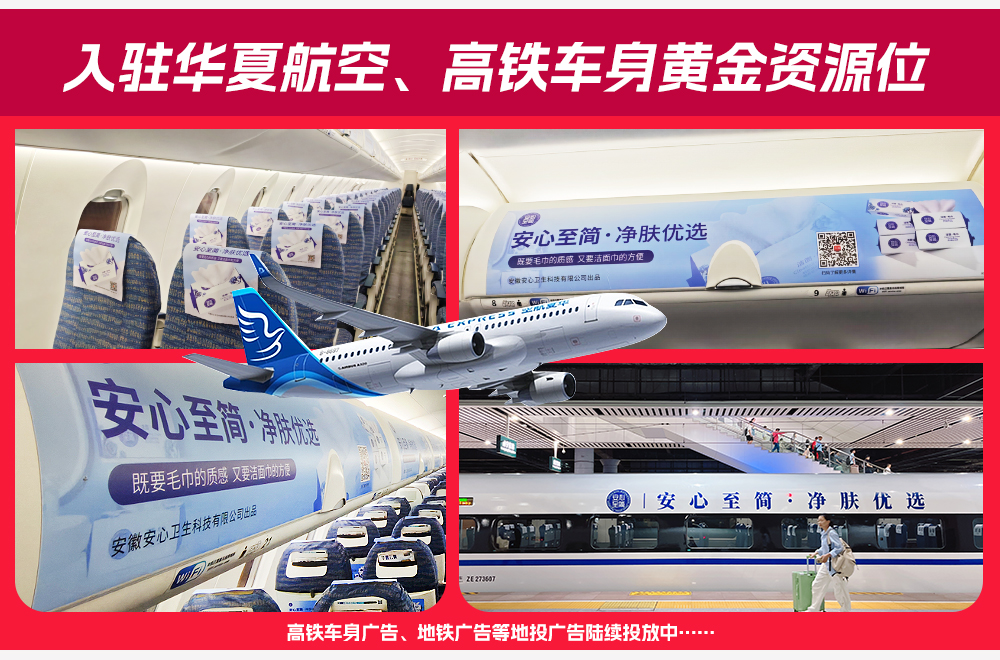 我公司“安心至簡(jiǎn)”品牌入駐華夏航空、高鐵車身黃金資源位,更多高鐵車身廣告、地鐵廣告等地投廣告陸續(xù)投放中……