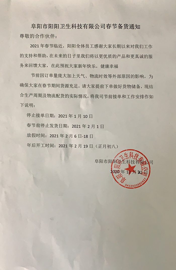各位朋友和合作伙伴,大家好!又到了歲末年初,由于疫情影響今年各行各業(yè)都受到很大沖擊,我們也在這種沖擊下努力前行著!很幸運(yùn)我們?cè)谶@樣的逆境中繼續(xù)實(shí)現(xiàn)了業(yè)績(jī)的穩(wěn)步增長(zhǎng),俗話說(shuō)“運(yùn)氣是留給有準(zhǔn)備的人”。這種幸運(yùn)不是偶然的,而是我們這些年在行業(yè)內(nèi)堅(jiān)持“品質(zhì)優(yōu)先”的發(fā)展理念是正確的,我們的產(chǎn)品和理念經(jīng)受住了市場(chǎng)考驗(yàn)。 我們深刻知道,成績(jī)的取得和大家的幫助是分不開(kāi)的,在此我們向大家表示真誠(chéng)的感謝:謝謝你們一如既往的支持!我們將繼續(xù)懷揣著感恩之心,創(chuàng)造更多精品,回饋大家的支持。 為不耽誤大家春節(jié)期間使用產(chǎn)品,現(xiàn)將春節(jié)前接單和生產(chǎn)計(jì)劃安排如下,請(qǐng)大家知悉!如有不詳,請(qǐng)致電我們。